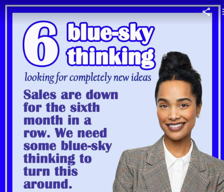 Sales are down for the sixth month. We need some blue-sky thinking to turn this around
