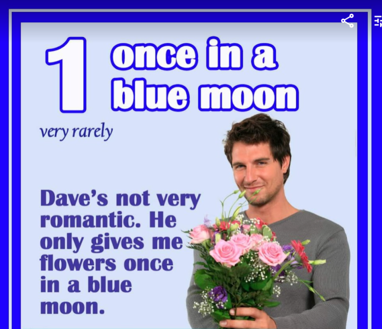 Dave's not very romantic. He only gives me flowers onece in a blue moon.