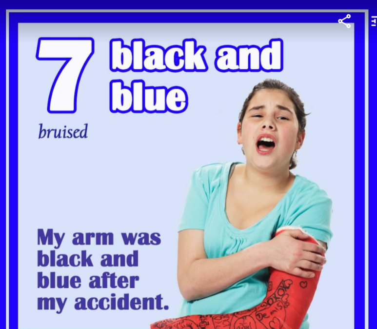 'black and blue'는 '멍들다'라는 의미 입니다. 멍이 들면 까맣고 파랗잖아요. ^.^