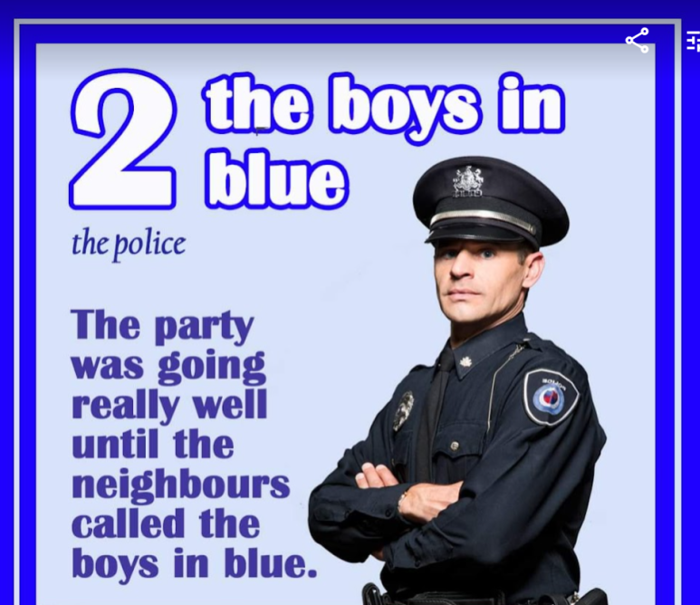 'boys in blue'는 경찰을 다른말로 할때 쓰입니다. 이말은 예전에 경찰의 제복이 파란색일때 이말이 유래가 되었다고 하네요. 우리 나라도 지금의 제복 이전에는 파란색 계열이었던 기억이 있습니다 ^.^