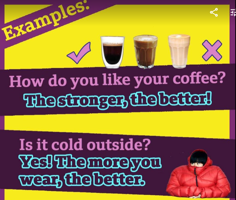 사용 형식은 그림과 같이 The + 비교급 형용사/부사 + The +better 인데요. 그 뜻은 '비교급일 수록 더 좋다'라는 의미 입니다..