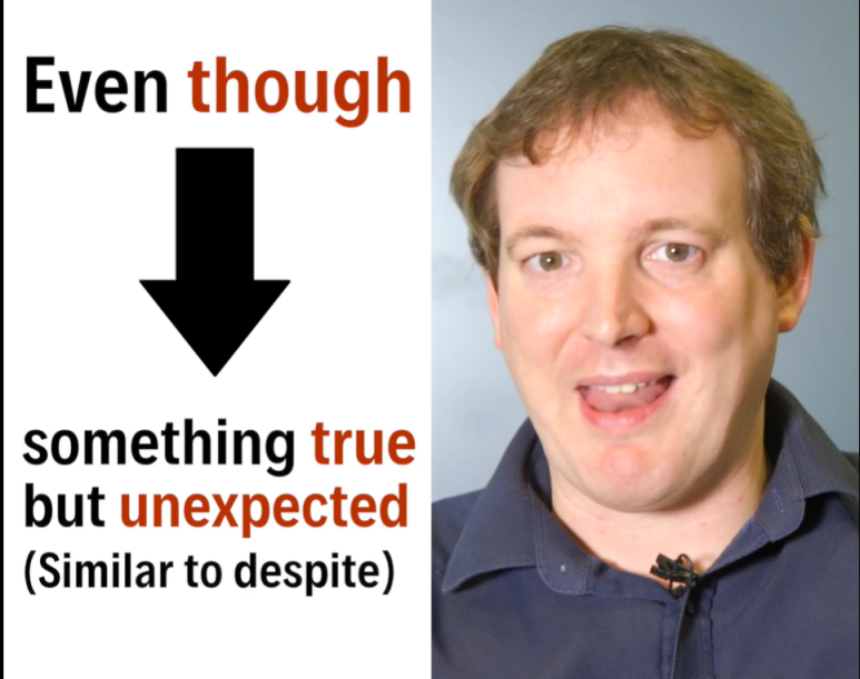 'even though'은 기대하지 않은 사실에 대해서 말을 할때에 사용을 합니다.