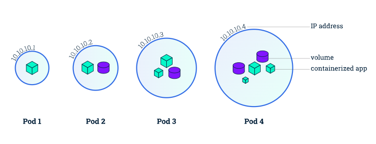 Kubernetes에서 배포 가능한 객체(Obejct )는 여러가지가 있지만 그중 최소 단위는 Pod 입니다. 이 Pod는 개별적인 IP를 가지고 Pod내부에는 그림과 같이 한개의 컨테이너나 여러개의 컨네티어와 볼륨 등으로 구성할 수 있습니다. 권고 사항은 한개의 Pod에 한개의 컨테이너를 구성하는게 권고 사항입니다. 그 이유는 MSA(Micro Service Architecture)로써 Pod에 여러개의 컨테이너가 존재를 하면 모니터링을 통한 프로세스 단위의 로그 수집이나 모니터링 장애 처리등이 어렵게 되어서 입니다.