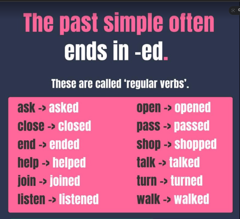규칙 동사(regular verb)는 동사원형에 ed를 붙여서 사용을 하면 됩니다. 불규칙 동사(irregular)에서는 과거형으로 사용을 하면 됩니다 .