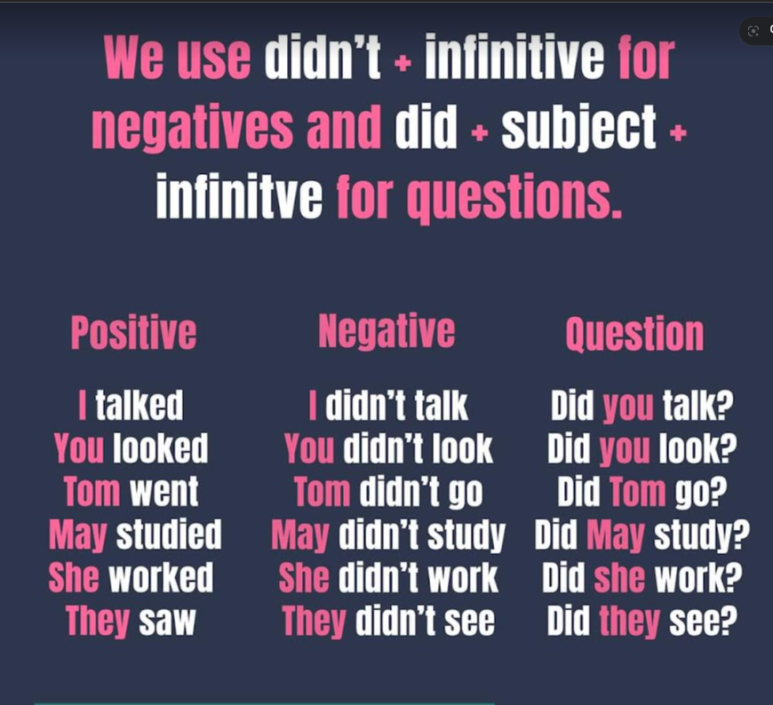 단순 과거 시제를 질의문이나, 부정문, 긍정문에서 어떻게 사용이 되는지 살펴 보겠 습니다.