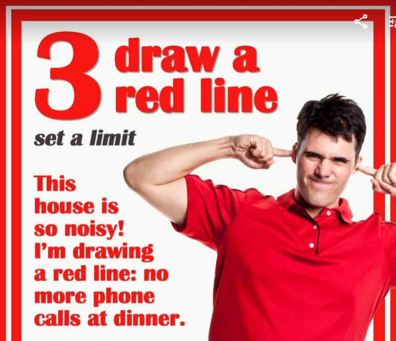 This house is so noisy. I am drawing a red line: no more phone calls at dinner.