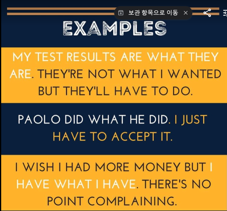 오늘은 어떤 상황을 받아 들여야만 할때 어떤 표현을 하는지 포스팅해 보겠 습니다.