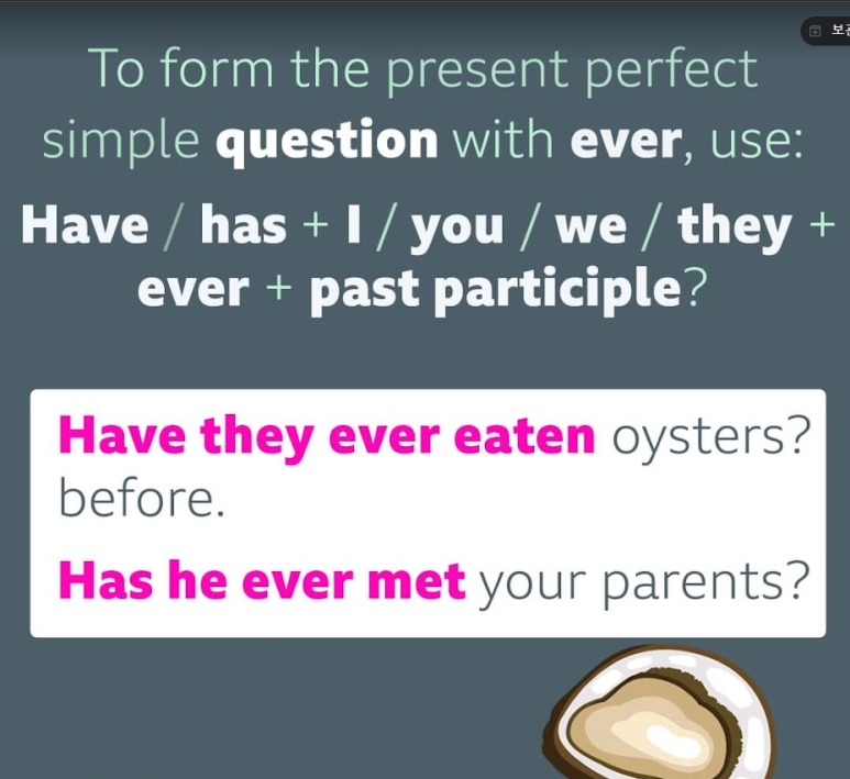사용 방법을 보면 Have/Has + 주어 + ever + 동사의 과거 완료 형태로 사용이 됩니다.