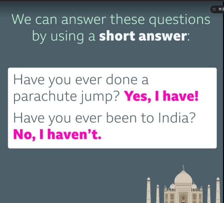 그리고 의문문에서 단순 현재 완료는 무엇 무엇 해본적이 있냐고 물어 볼때에도 사용이 되는데요 ^.^