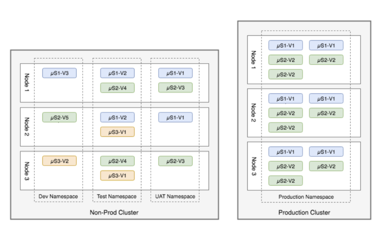 In this post, I will post about Namespace, a virtual cluster function in Kubernetes. In the picture above, Pods of the same color exist in the same Namespace. Create multiple clusters using namespace in one node. The same namespace between each node communicates, that is, it provides the function of a virtual cluster.