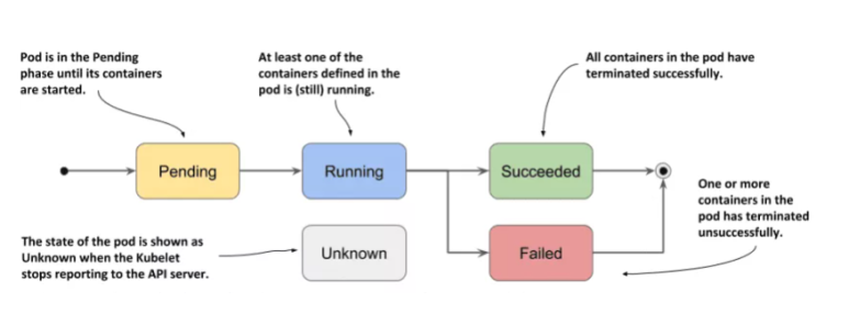 Now we have deployed the Pod. Then, let's find out about the state of this Pod. Pod has 5 states as shown in the figure below.