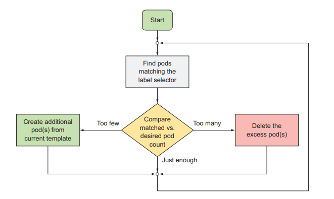 For example, after selecting a target pod by using the label selector value among dozens of pods in the cluster, it continuously monitors and creates a new pod when a pod fails and deletes the failed Pod while maintaining the service.