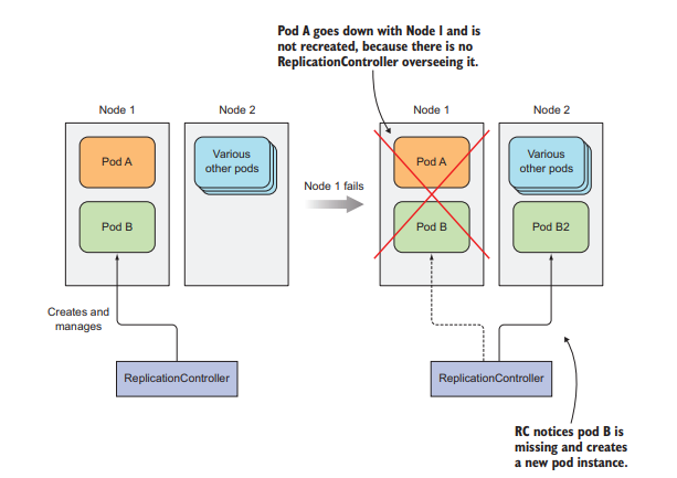 Let's take a closer look at how replicaset works. Node1's Pod is different from Replicaset's Label value. Under the assumption that Pod B has the same label, if Node 1 fails. Pod B is recreated and operational on Node 2 by replicaset, but Pod A is not failover.