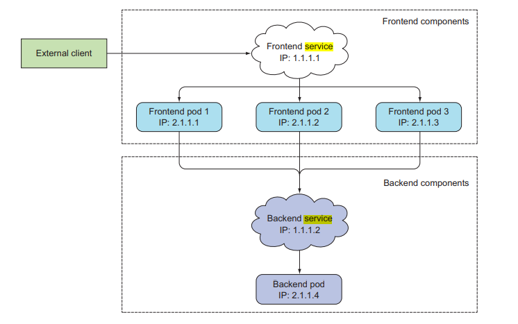 In this case, when a service request is made to the pod from the outside, a service failure occurs because the request is made with the old IP. Thus, it is a structure in which an object called Service is created, the IP of the Service Object is exposed to the outside, all service requests are made to the Servie Object, and the Service Object distributes requests to each Pod and delivers them and processes the service.