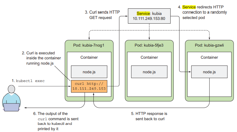 Now, if you send a service request with curl (command URL) to the Service object, you can see that it works normally.