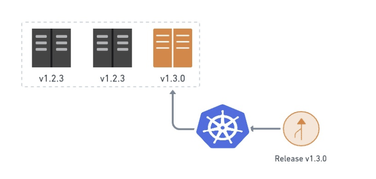 Initially, it operates with 2 V1.2.3 Pods and 1 V1.3.0 Pod, and then increases to 2 and finally 3 as shown in the figure below.