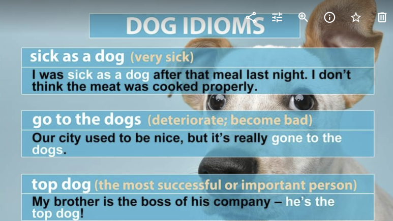 - sick as a dog: '매우 아프다'라는 의미로 사용이 되는데요. 저는 개가 아픈걸 본적이 없어서 ^.^ 얼마나 아파 하는지는 잘 와닿지 않네요. ^.^