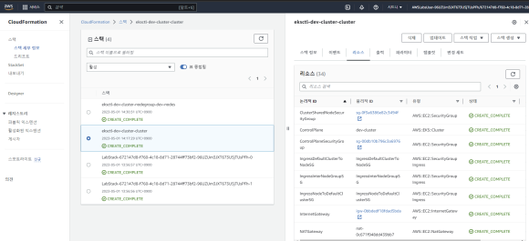 10. If you click on Cloudformation. You can see it is creating a CloudFormation stack called eks-dev-clouste-cluster