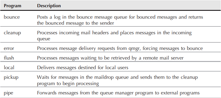 Among MTA software, popular programs are sendmail and Postfix.