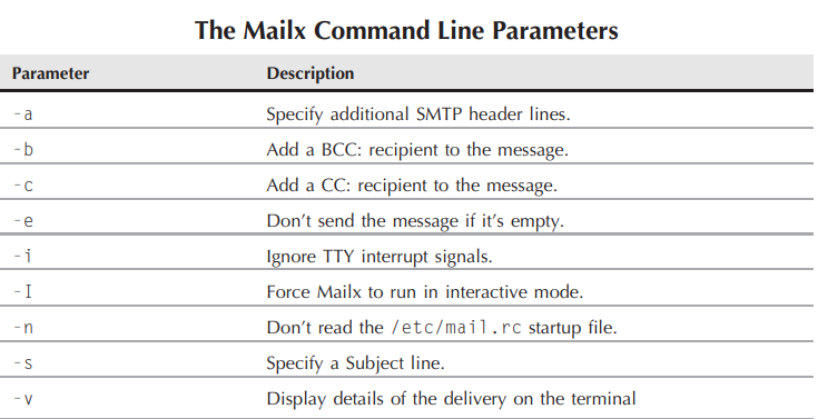 The syntax for using mailx is as follows, and the available parameters are as shown in the table below.