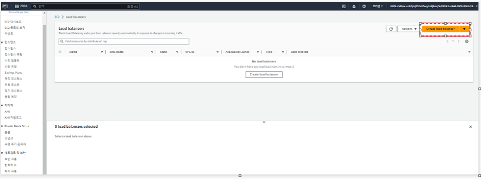 아래 그림과 같이 Create Load Balancer를 클릭 합니다.