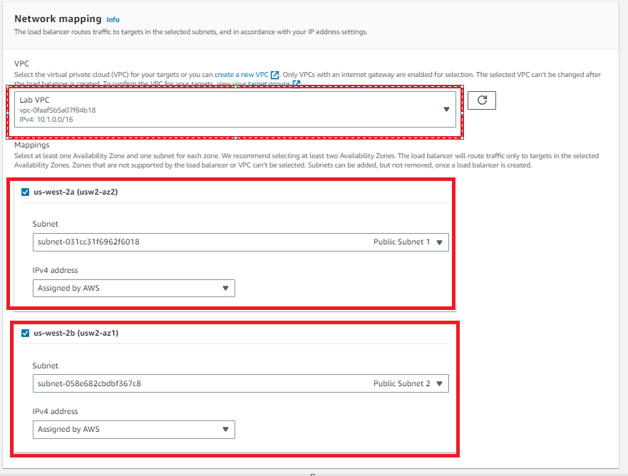 Mapping 부분에 2개의 AZ(Available Zone)을 클릭 합니다.