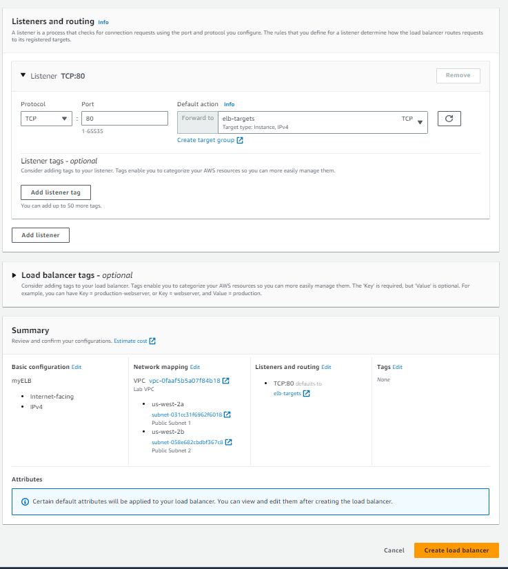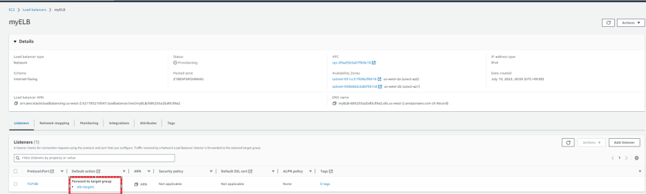 그럼 이제 listener and routing 부분으로 돌아 가서 생성된 target을 클릭 합니다.