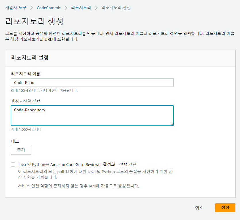 First, create a CodeCommt repository for storing source code.