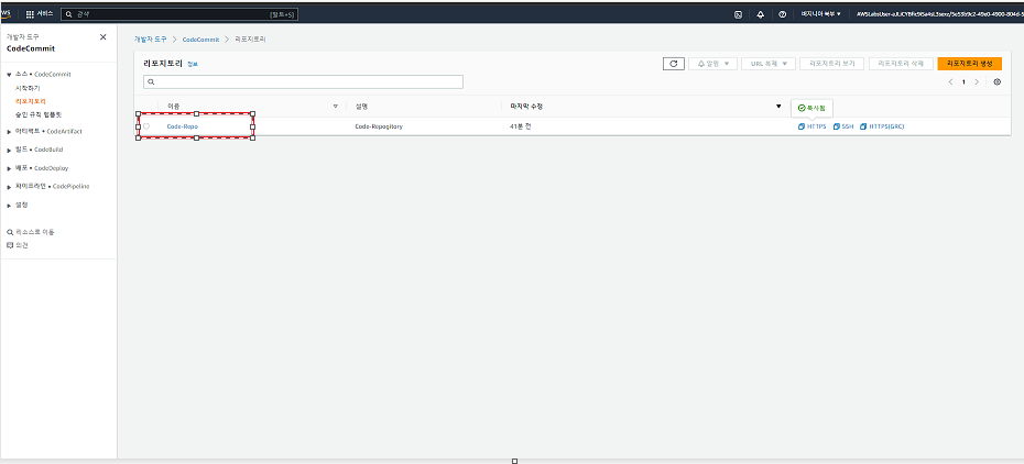 In the AWS Service Console window, find Code-Repo and click it.
