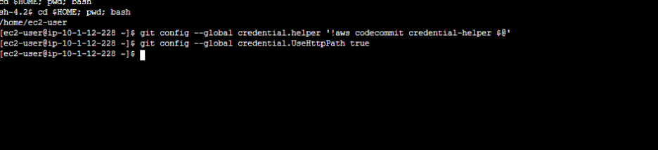 7. Run the command below to configure Git credential helper with AWS credential profile and enable Git credential helper to send paths to repositories.