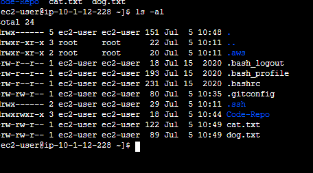 16. Now, let's push the created file from the local repository to Amazon's Repogiroty.