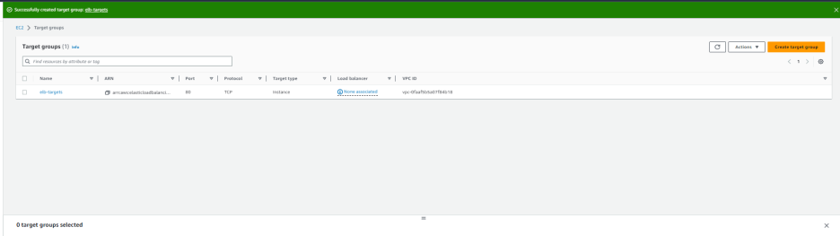 Then, as shown at the bottom of the screen above, confirm that two EC2s in pending state are included and click the create target group button.