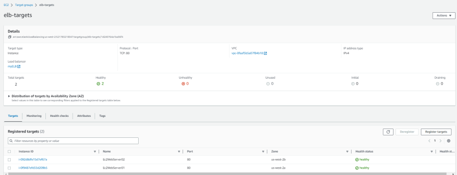 As shown in the screen above, Test Website EC2 Instance 1 and 2 confirm that the web service is normal.