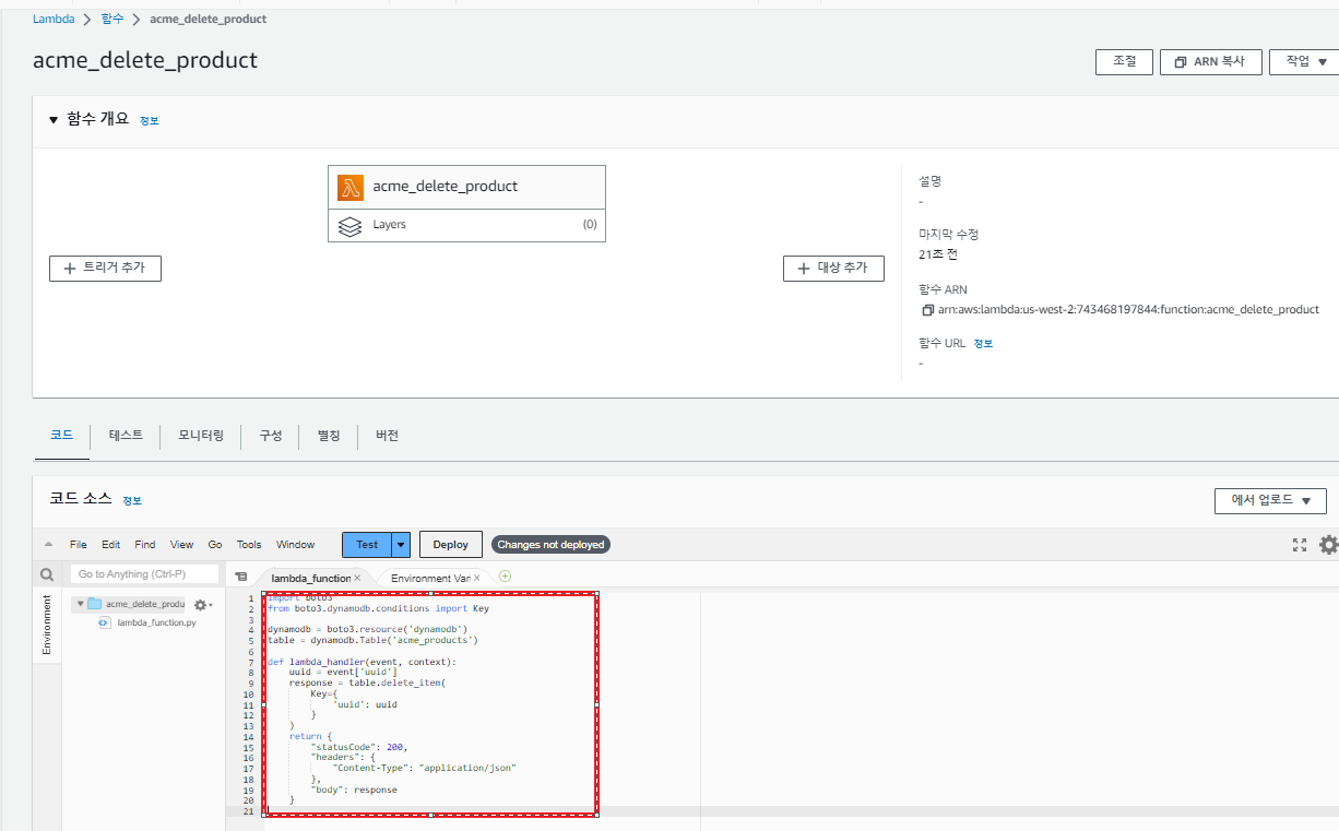 DELETE PRODUCT LAMBDA 함수 생성