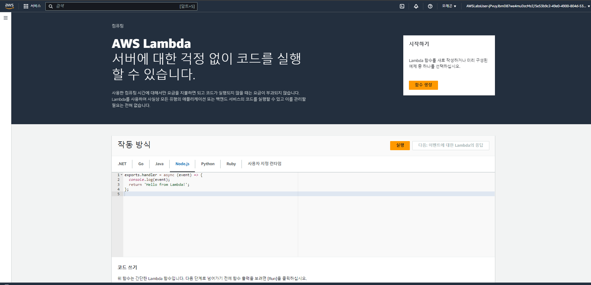 그럼 이제 Lamda를 생성해 보겠습니다.