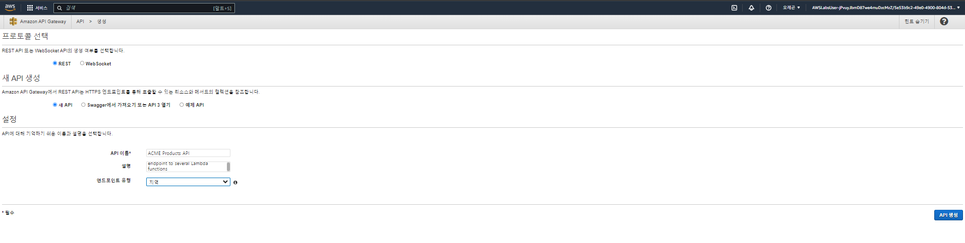 Amazon API Gateway 생성하기.