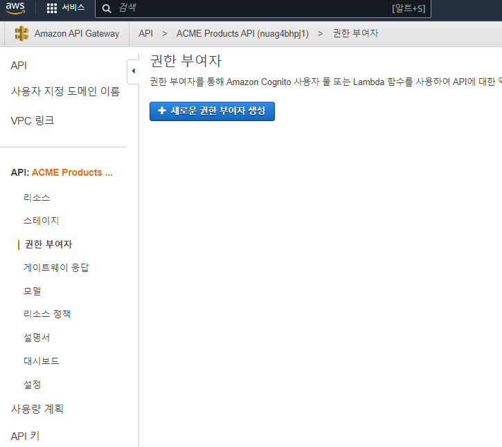 이제 API Gateway로 돌아가 권한 부여자를 생성하고 보호하려는 메서드에 연결을 해보겠습니다.