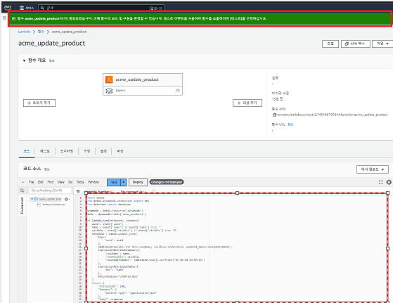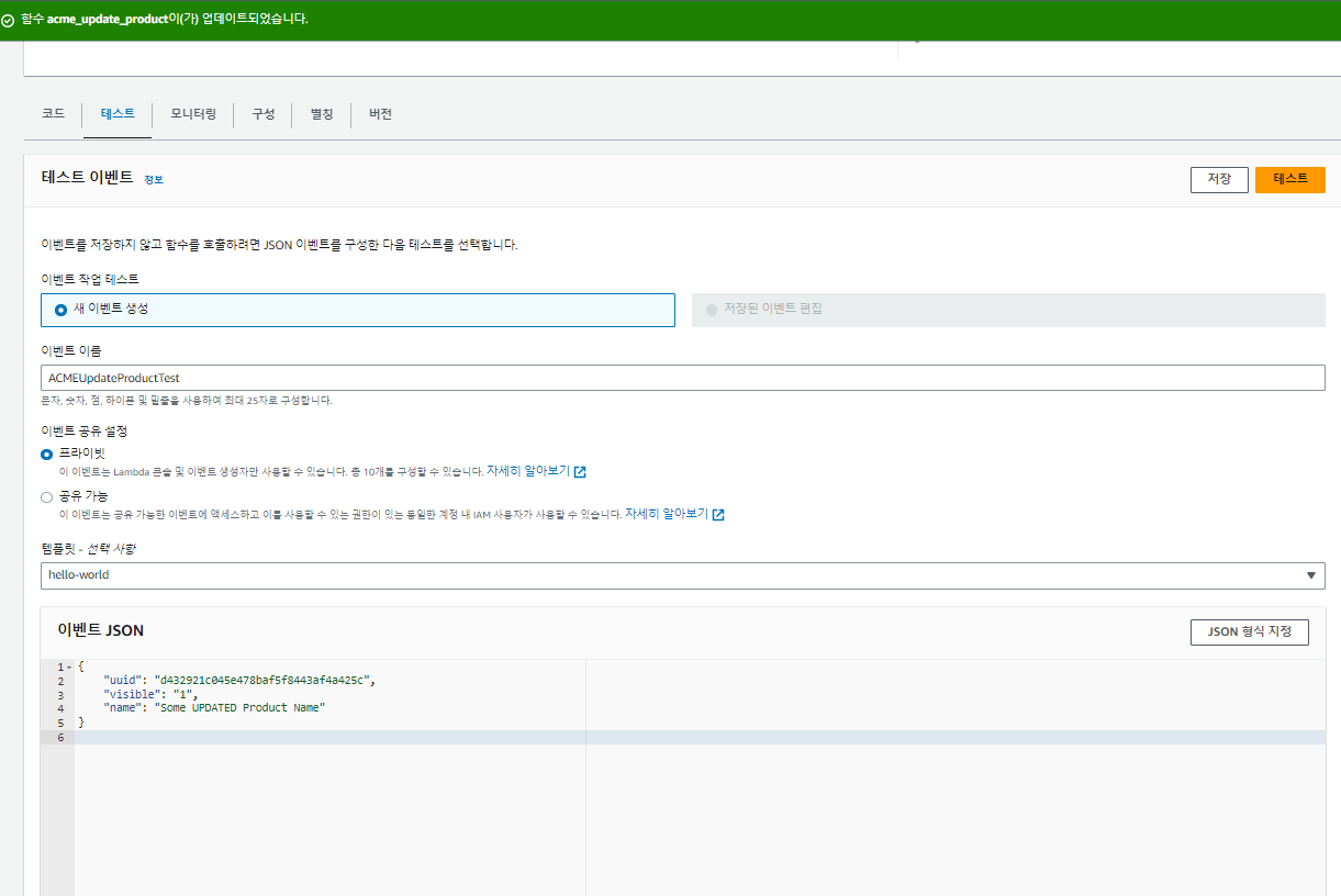 UPDATE PRODUCT LAMBDA 함수 생성