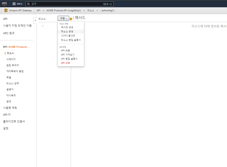 API GATEWAY 리소스 생성