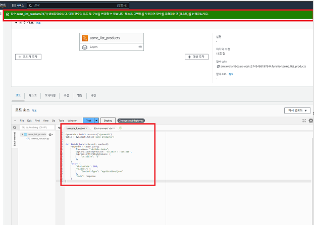 LIST PRODUCTS LAMBDA 함수 생성