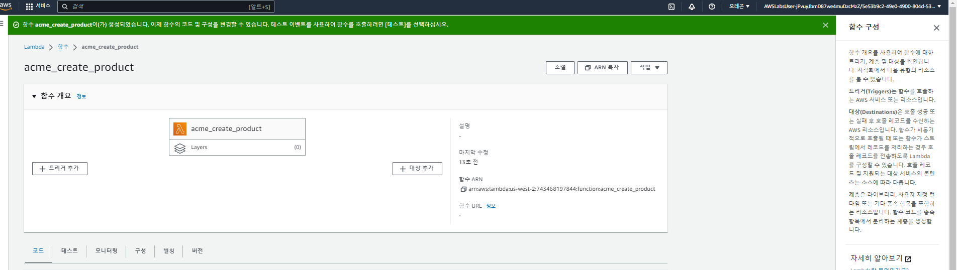 그럼 이제 아래 화면과 같이 함수가 성공적으로 만들어 졌는지 확인 합니다.