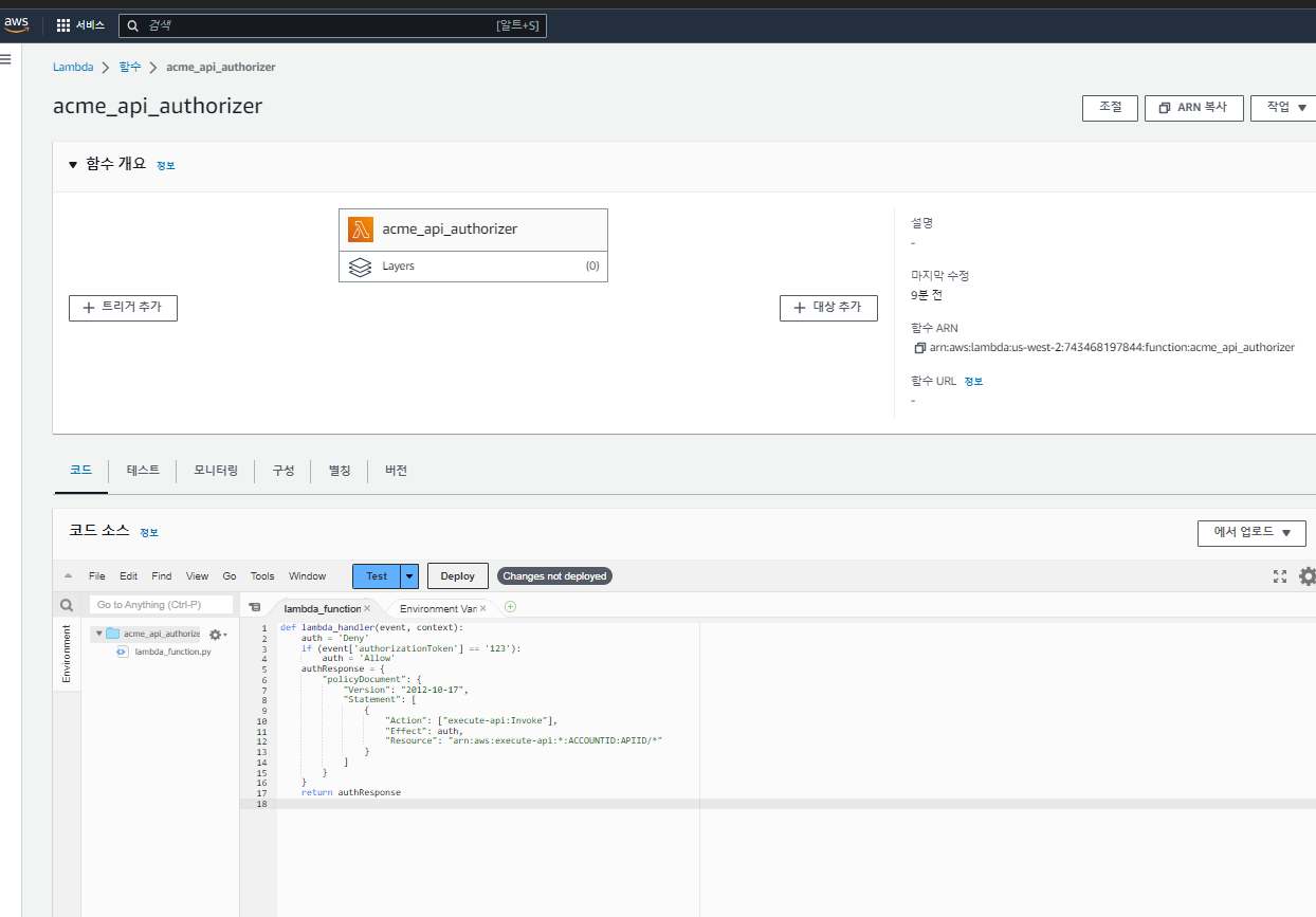 여기서는 권한 부여 검증을 수행할 Lambda 함수를 생성 해보겠습니다.