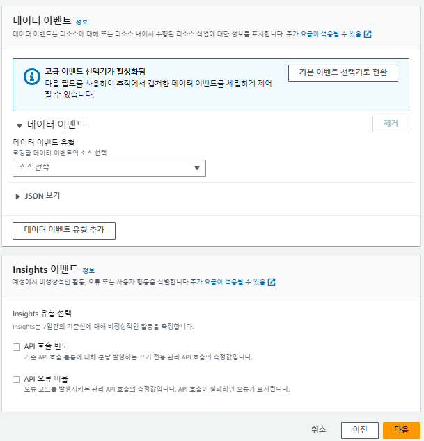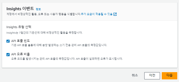 인사이트 이벤트에서 아래와 같이 선택을 하고 넥스트를 클릭 합니다.