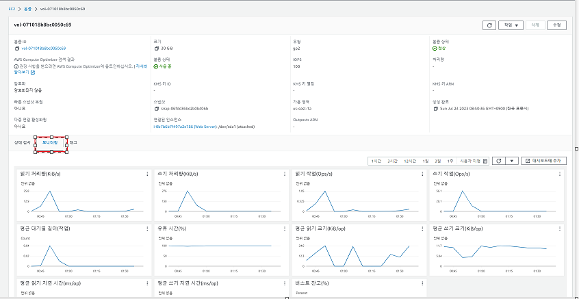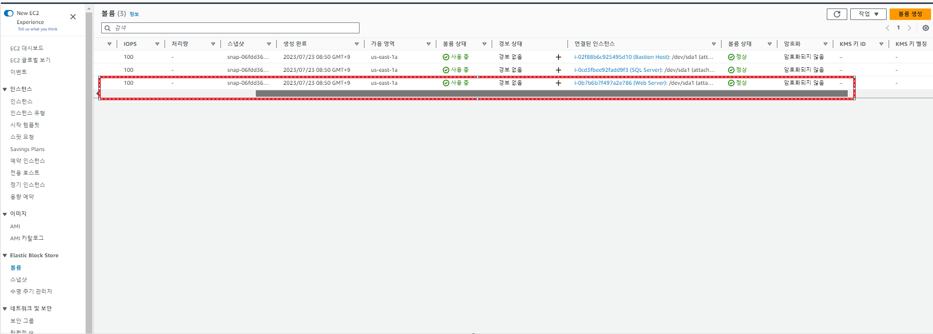 이중 Web Server에 연결된 볼륨을 클릭 합니다.
