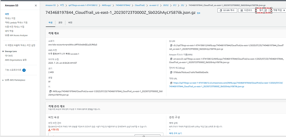 이제 AWS CloudTrail을 사용하여 구성 세부 정보와 S3 스토리지 위치를 검토하는 방법에 대해서 살표 보겠습니다.
