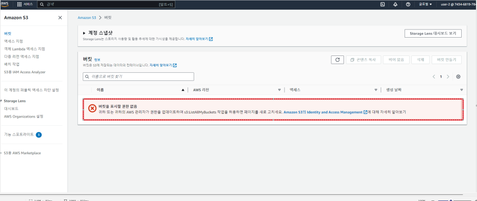 USER-2는 S3를 볼수 있는 권한이 없기 때문에 표시된 것입니다.