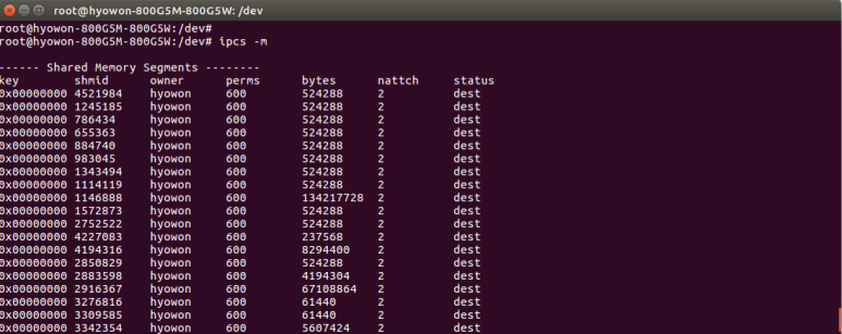 icps -m 명령어는 이런 Shared memory의 상태를 조회할수 있는 명령 입니다. 각각의 필드에 대한 설명은 추후 다른 장에서 세부적으로 다루기로 하겠습니다.