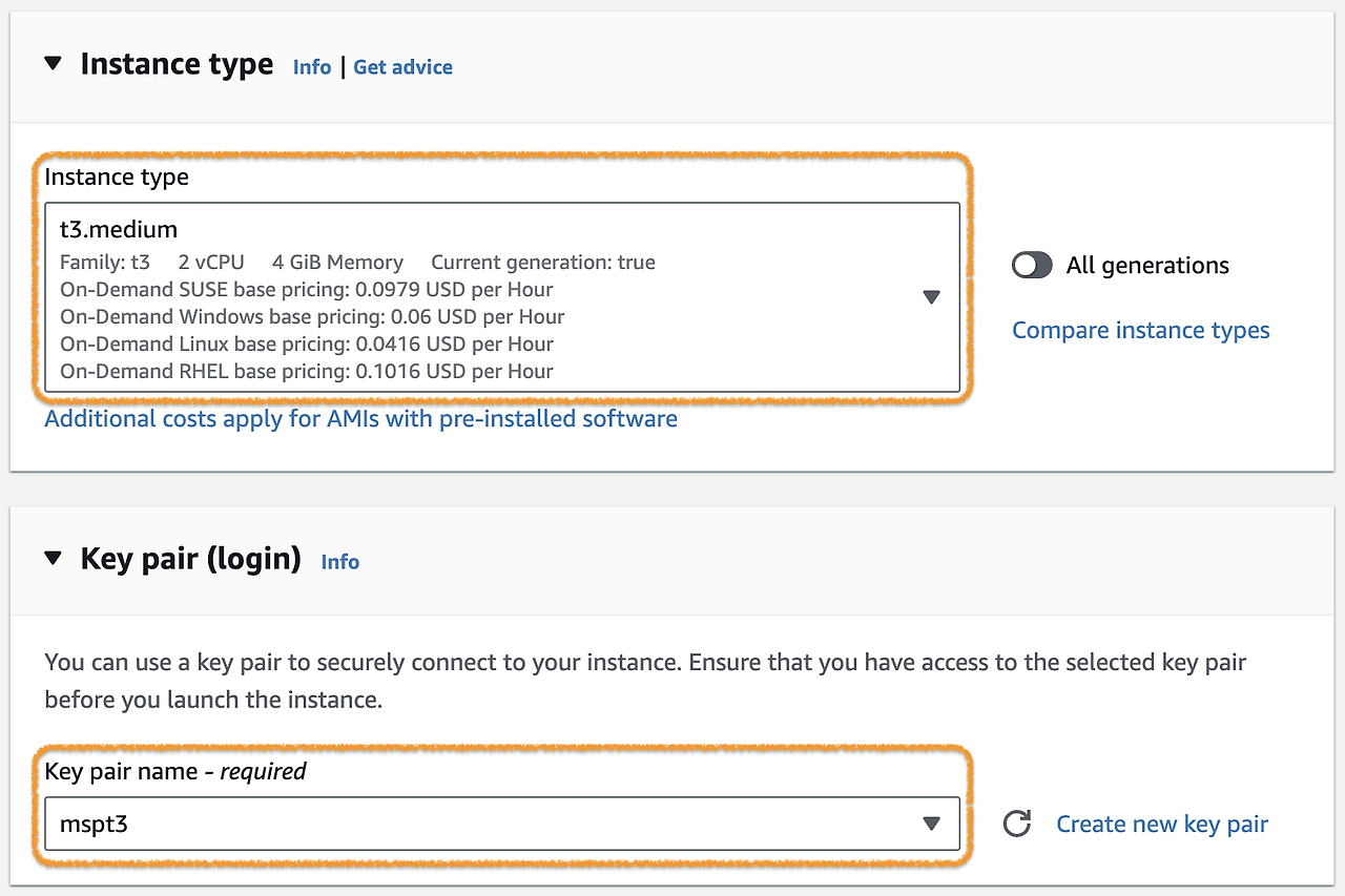 2) Select the Instance Type that meets the specifications of the application you want to configure.