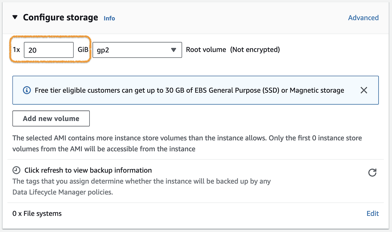 4) Set the Storage on the Instance to the capacity of the application.