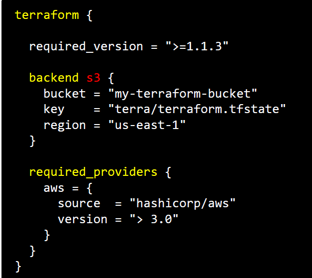 다음으로 terraform 블럭이 있는데요 이 블럭은 아래와 같습니다.